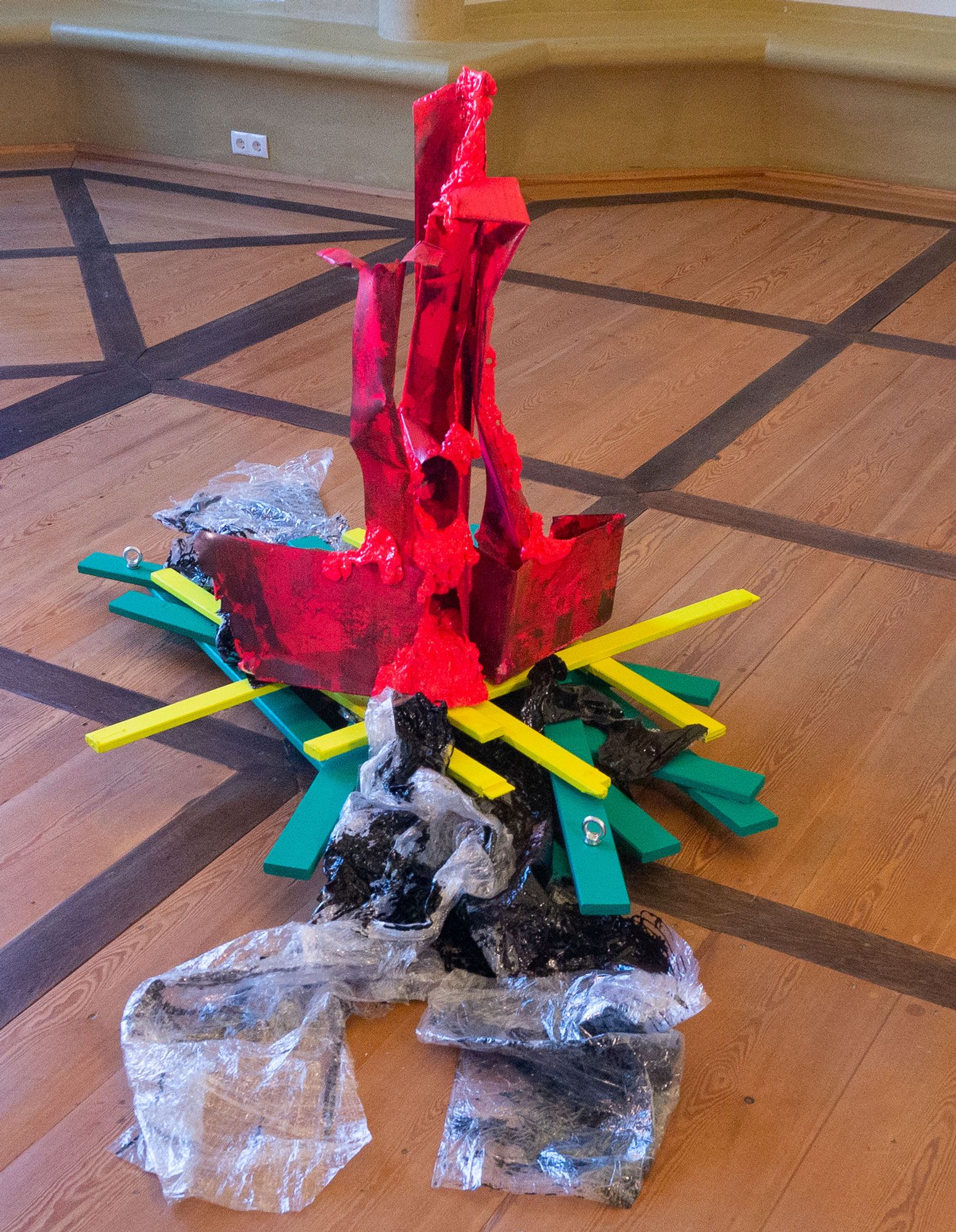 Befeuert wird diese Situation von der Skulptur „Glut“ von Steffen Schiemann, Mixedmedia und auf Rollen gestellt.